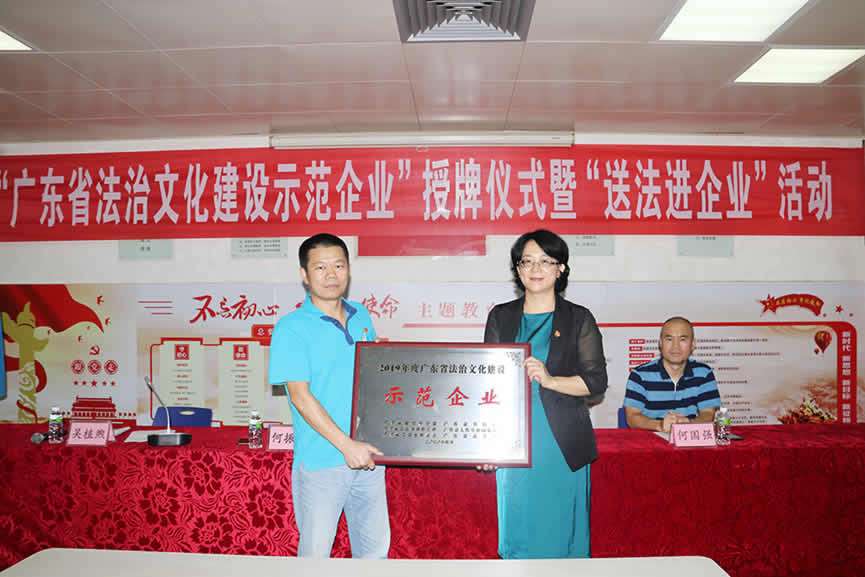 近日,省普法辦、省司法廳、省工信廳、省國資委、省工商聯(lián)、省總工會聯(lián)合公布了2019年廣東省“法治文化建設(shè)示范企業(yè)”評選結(jié)果,我公司以扎實的創(chuàng)建成果,通過層層考核和篩選,最終被評選為廣東省“法治文化建設(shè)示范企業(yè)”,成為江門市13家上榜企業(yè)之一,也是恩平市唯一一家上榜企業(yè)。創(chuàng)建法治文化建設(shè)示范企業(yè),旨在不斷提升企業(yè)依法經(jīng)營、依法維權(quán)、依法辦事、依法管理的水平,將企業(yè)的生產(chǎn)、經(jīng)營、決策、管理等各個環(huán)節(jié)納入法治的軌道,促進和保障企業(yè)持續(xù)、健康發(fā)展。今后,我