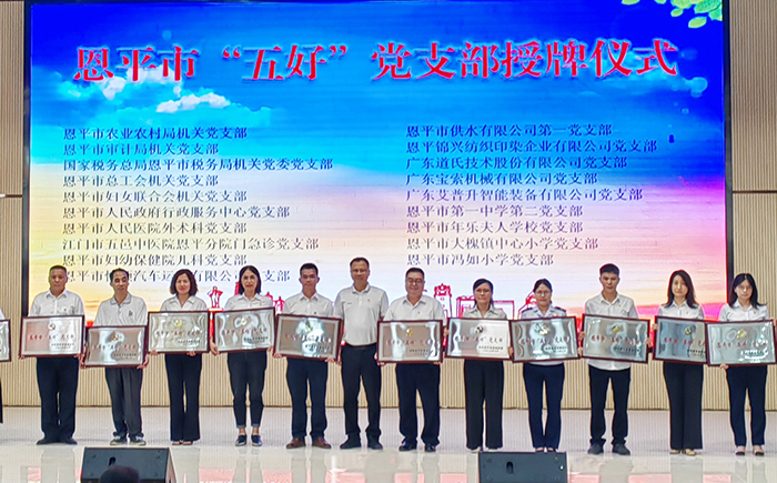 近日,我公司第一黨支部獲評我市“五好”黨支部。7月21日下午,恩平市“五好黨支部”頒獎活動在市黃岡實驗中學舉行,我公司第一黨支部書記梁均揚作代表上臺領獎。
